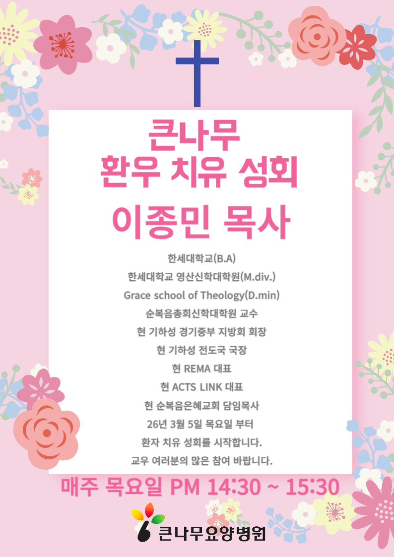 몸과 마음의 치유를 큰나무요양병원과 함께 하여 새로운 인생도약의 길이 되기 희망합니다.